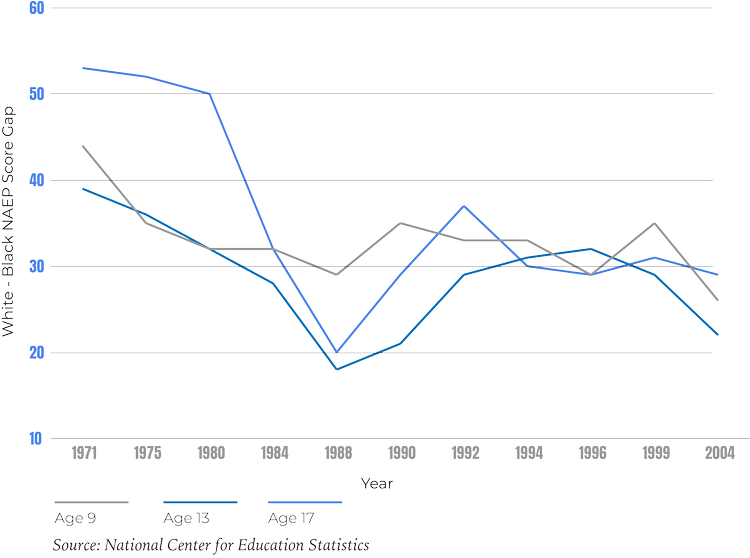 The racial achievement gap is the same now as it was in the 1980s.